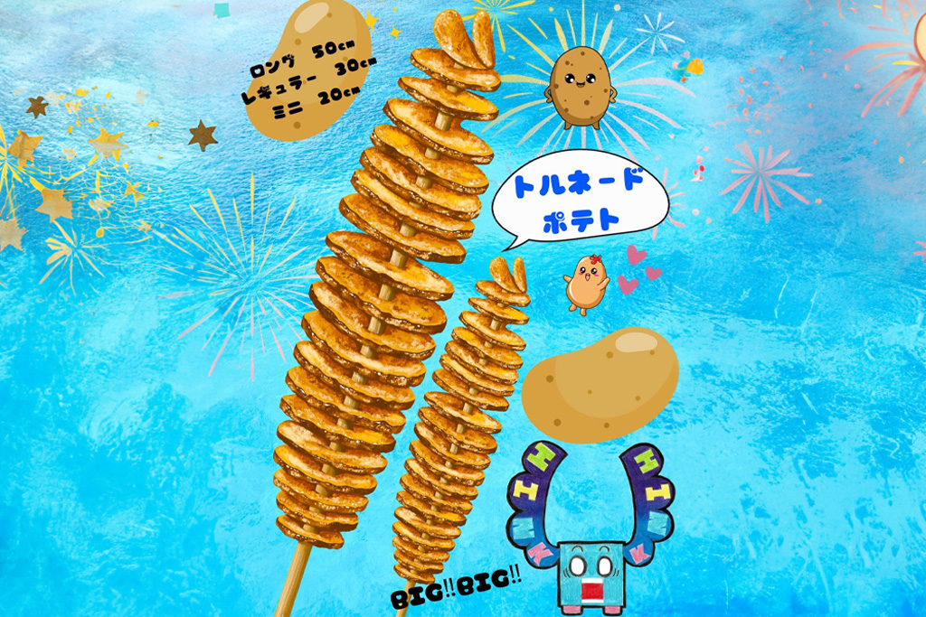 揚げたての、サクサクの、ロングトルネードポテトご賞味ください