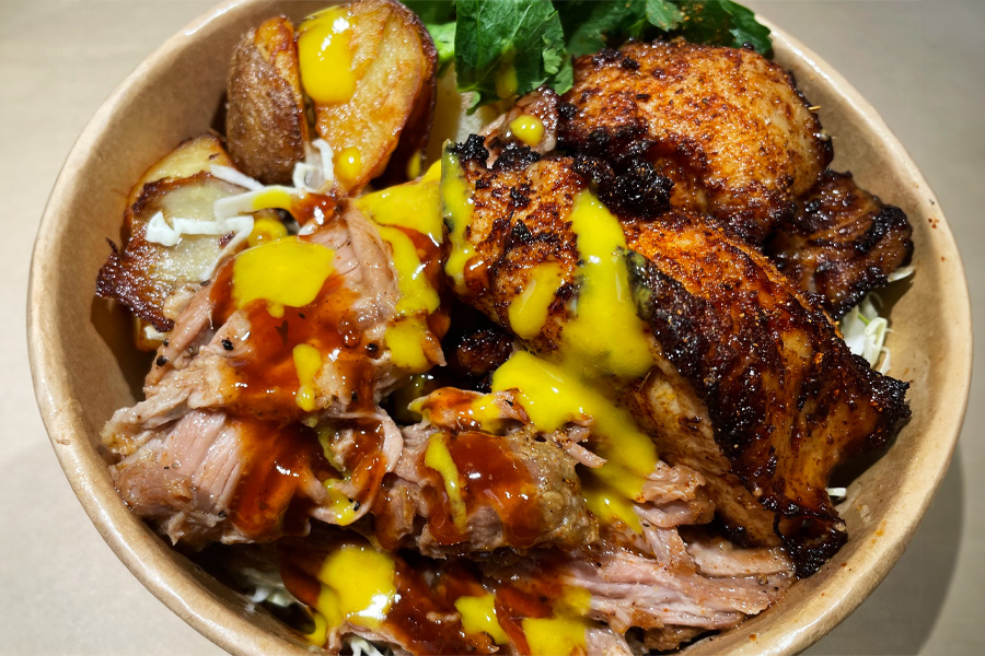 プルドポーク&ケイジャンチキンBOWLはジューシーで香ばしくて柔らか!